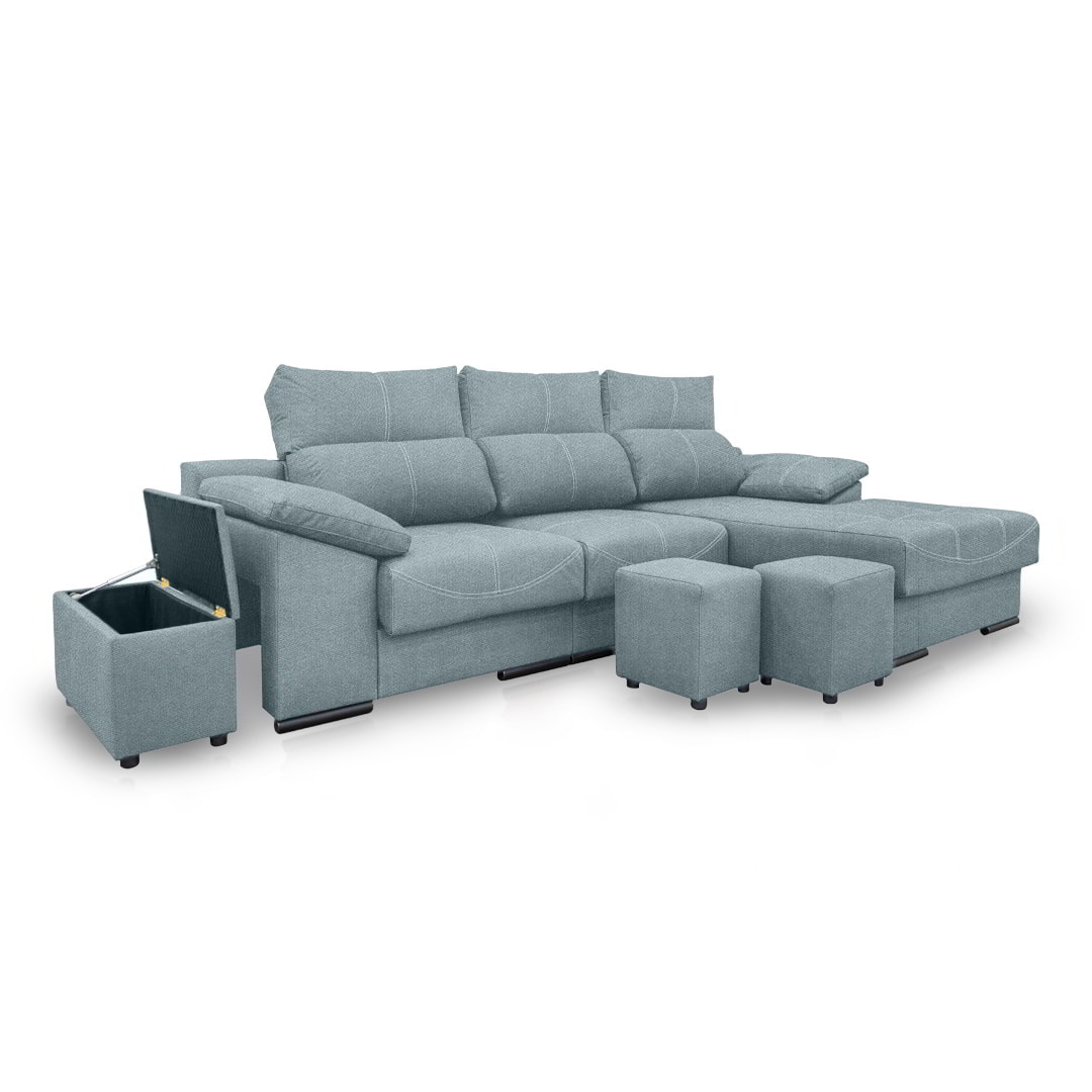 Con el diseño Phyllis, ganas un plus de espacio en casa a la hora de recibir visitas, ya que el sofá incluye en su diseño dos taburetes para ampliar tus espacios y ofrecer el máximo confort a todos. Además, cuenta con un baúl para que tengas un sitio de guardado extra al mismo tiempo que decoras tus ambientes.