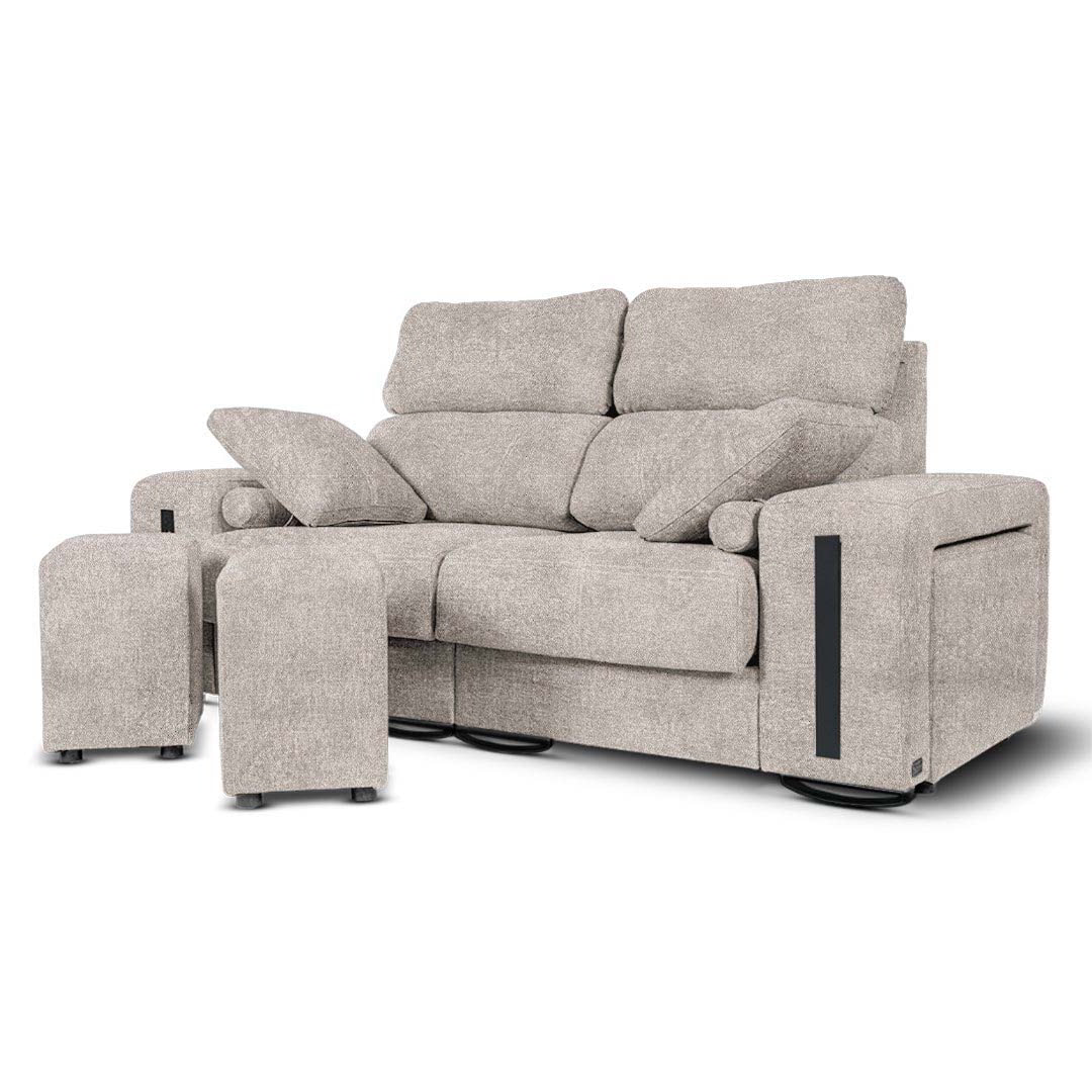 Con el diseño Thiara, ganas un plus de espacio en casa a la hora de recibir visitas, ya que el sofá incluye en su diseño dos taburetes y una banqueta para ampliar tus espacios y ofrecer el máximo confort a todos.